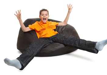 Ležeč položaj: vrečo nagnemo nazaj, vendar ne do tal. Usedemo se na spodnjo tretjino višine vreče. Za udobnejši počitek priporočamo uporabo Tabyja.